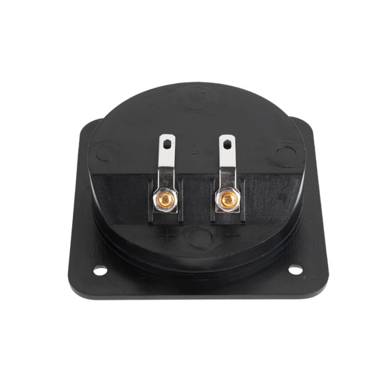 Conector patrat pentru difuzoare, 2 conectori aurii tip Banana (1 difuzor), montare pe panou.