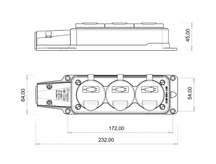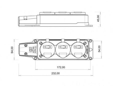 Fisa cauciuc cu capac Bemis BK1-1402-3613 2P+E, 3 iesiri, 16A, 250V, IP54.