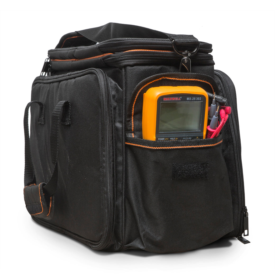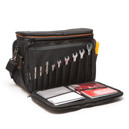 3 buzunare fixe ?i unul cu clapet? rabatabil?, toate într-un spa?iu interior rigidizat, capabile s? sus?in? în siguran?? unelte de diferite dimensiuni.