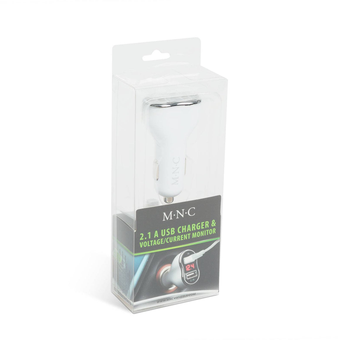 Incarcator auto alb 3.1A USB x2 bricheta auto cu voltmetru si ampermetru M.N.C.