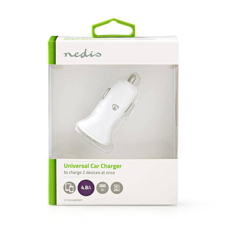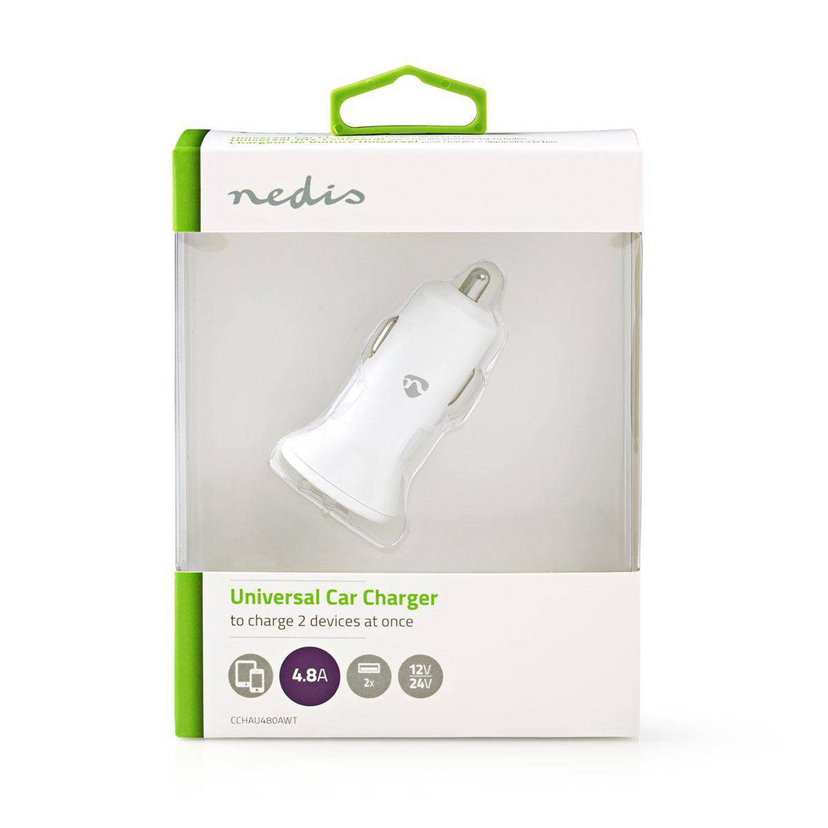 Incarcator auto bricheta cu 2 iesiri USB A 4.8A alb Nedis