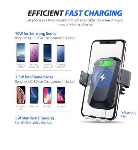 10W compatibil Samsung Galaxy S10 / S10 + / S8 / S8 Plus / S9 / S9 + / S7 / S7 Edge 7.5W pentru iPhone 8 / 8Plus / X / XPlus 5W pentru alte telefoane inteligente Qi-enabled.