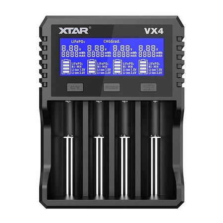 XTAR VX4 incarcator universal inteligent, care poate incarca simultan pana la 4 acumulatori, indiferent ca acestia sunt Li-Ion (IMR, INR, ICR) la 1.5V, 3.6V, 3.7V, Ni-Mh/Ni-Cd la 1.2V, LiFePO4 la 3.2V.