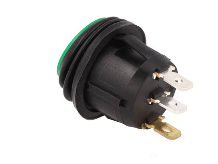 Intrerupator ROCKER SPST 2 pozitii OFF-ON cu retinere 20A/14VDC 50m? LED verde impermeabil IP65 SCI R13-112B8-02-BBG.