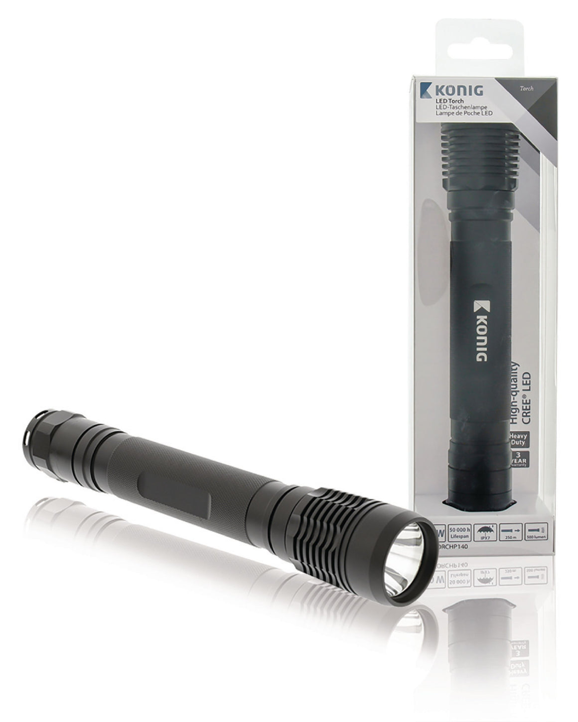 Lanterna cu carcasa din aluminiu neagra LED 10W Baterie tip C R14 Konig