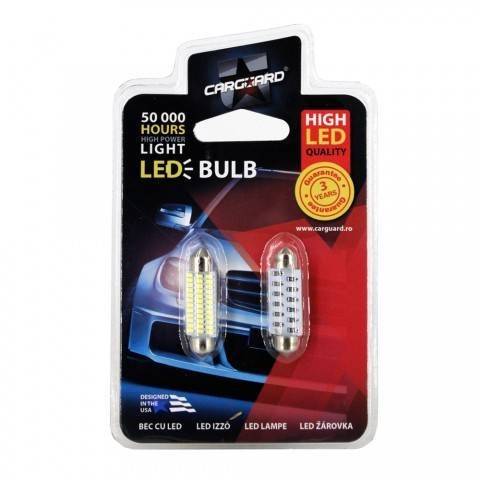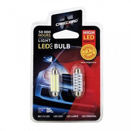 CARGUARD este brandul românesc de accesorii auto cu o tradi?ie de peste 15 ani! Produsele ?i accesoriile Carguard sunt fabricate sub îndrumarea ?i supravegherea unei companii din Jude?ul Bihor ?i sunt optimizate pentru a livra un raport calitate-pre? cât mai bun pentru pia?a din România! Soclu: SV-8.5 Tip bec: LED Tip lumina: Alb rece Flux luminos lm: 252 lumen Tensiune intrare: 12 V Putere W: 1.5 W Marca: Carguard Garantie: 24 luni persoane fizice / 12 luni persoane juridice