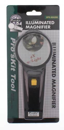 Lupa cu lampa LED x1, marcaProsKitDimensiuni lentila: 22x35 mmUtilizeaza doua baterii AA 1.5 VMaterial lentila: SticlaMarire: 4X Culoare: Alb Marca: Pro'sKit Garantie: 12 luni
