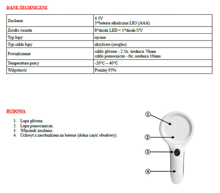 Lupa este echipata cu iluminare UV pentru identificarea contrafacuta a bancnotelor de hartie, pasapoarte, picturi, studiu de geologie. Tip bec: LED Tip lumina: Ultraviolet Tip lumina: Alb rece Culoare: Alb Marca: Pro'sKit