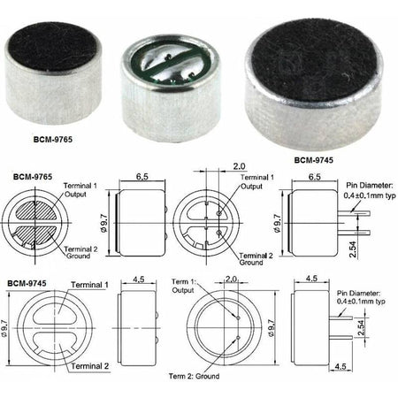 Microfon 9.7x4.5mm 2.2kohm 600uA 1.5/10V Microfon condensator BESTAR BCM9745-44.
