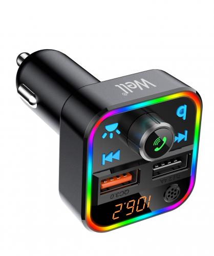 Transmi??tor FM Bluetooth cu lumini LED RGB. Acest dispozitiv poate s? redea muzic? ?i apeluri direct de pe dispozitivul Bluetooth c?tre sistemul FM stereo al ma?inii.