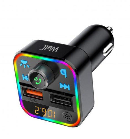 Manual de utilizare Tip: Auto Tip: Bluetooth Conector: USB A Conector: Bricheta auto A Conector: Bricheta auto B Conector: 2 x USB mama Standard: QC 3.0 Standard: v5.0 Standard: STEREO Tip bec: LED Tip lumina: Multicolore Tensiune intrare: 12 V/ 24 V DC Tensiune de iesire: 5 V USB Amperaj: 2.4 Ah Culoare: Negru Marca: Well Garantie: 24 luni persoane fizice / 12 luni persoane juridice