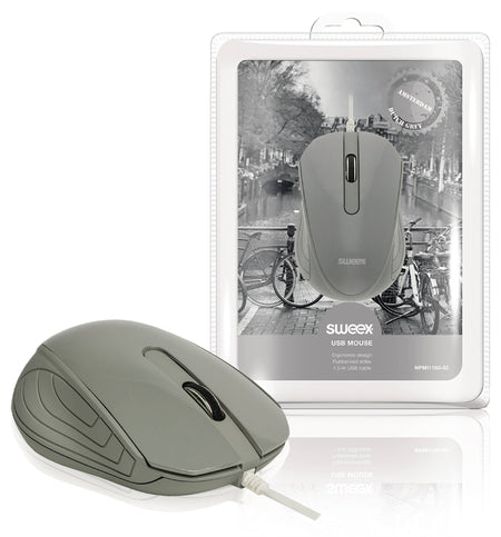 Mouse optic USB, 3 butoane, Amsterdam Sweex. Mouse cu partile cauciucate si un design ergonomic pentru a spori confortul de functionare a unui PC sau a unui notebook pentru persoanele din stanga si dreapta. Mouse-ul face parte din seria City si vine in 8 culori diferite Design ergonomic. Parti cauciucate. Cablu USB de 1,5 m. Conexiune USB. Culoare Gri. Material Plastic. DPI 1000 dpi. Ergonomia Ambele maini. Numar de butoane 3. Sistem de operare: Windows 10. Windows 8. Windows 7. Windows Vista Marca: Sweex Accesoriu: Mouse Tip: Cu fir Conector: USB A Conector: Cu fir Marca: Sweex Garantie: 24 luni persoane fizice / 12 luni persoane juridice
