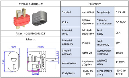 Mufa alimentare DC AM-1015 tata PIN 2 pe cablu lipite 25A AMASS AM1015E-M.