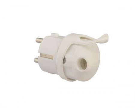 Mufa tata Stecher Schuko cu inel de prindere iesire laterala alb 250V 16A Well