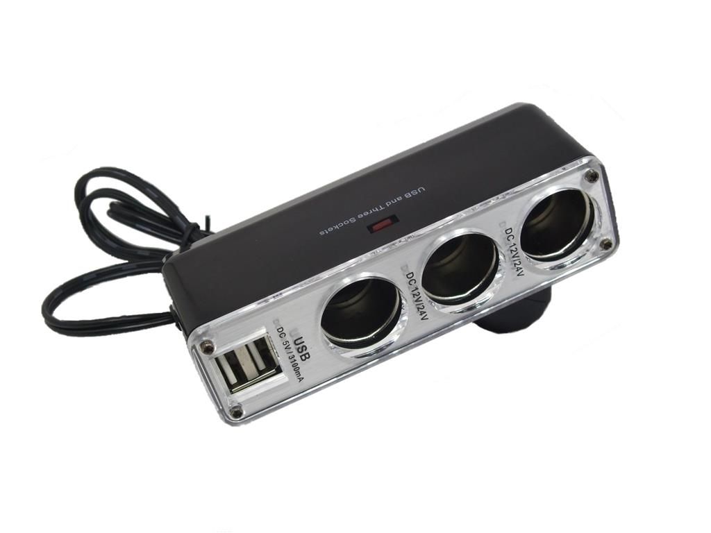 Multiplicator bricheta auto cu 3 iesiri si 2 iesiri USB 5V 2A 50W Well.