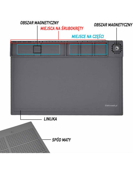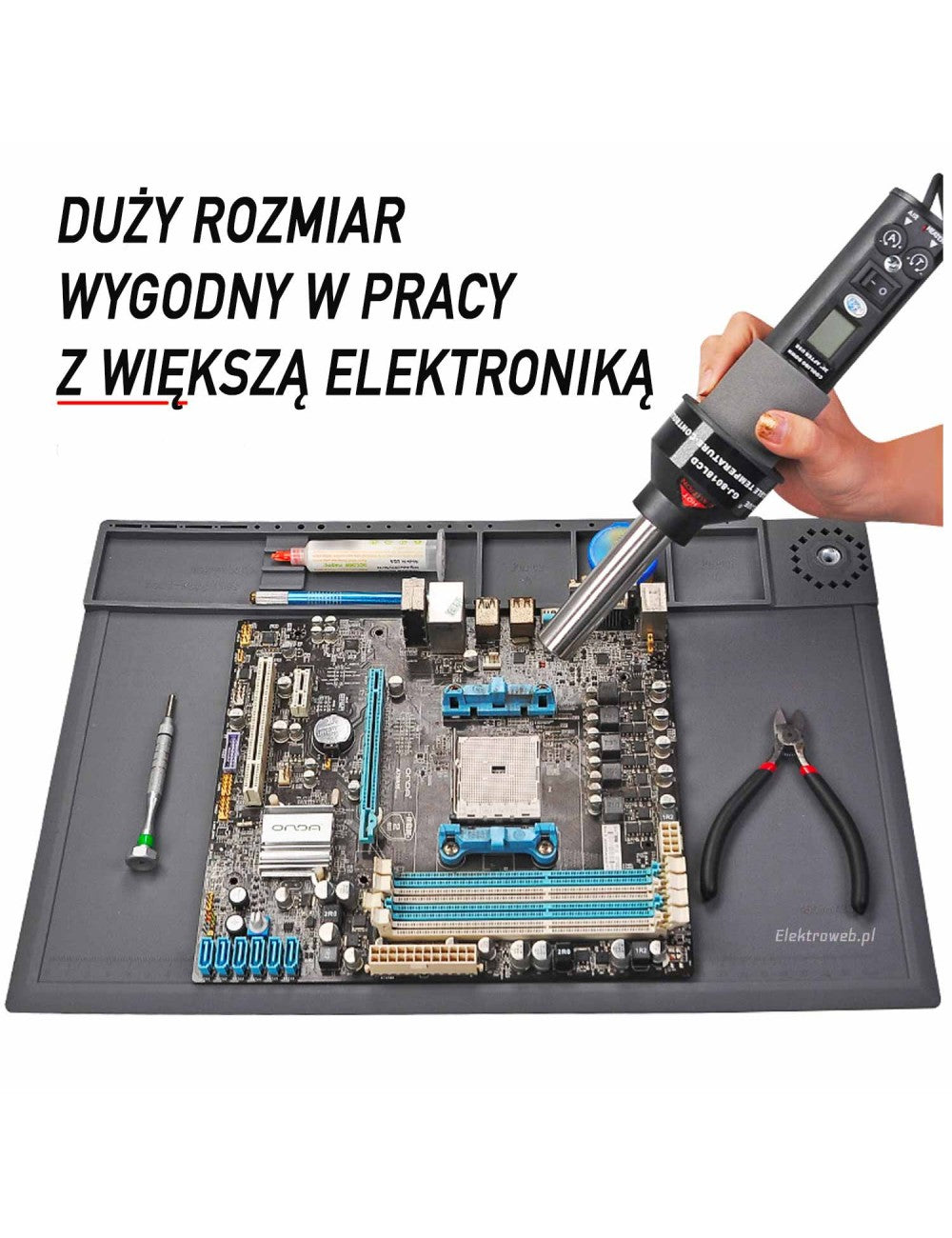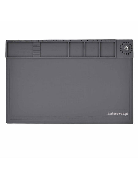 Un covoras mare din silicon gri, util in lipirea sau intretinerea dispozitivelor electronice.