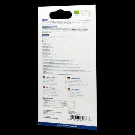 Pasta termoconductoare Arctic Cooling MX-4 tub 4 grame bazata pe microparticule de carbon, disipeaza in mod rapid si eficient caldura procesorului si a placii grafice; ideala pentru overclocking
