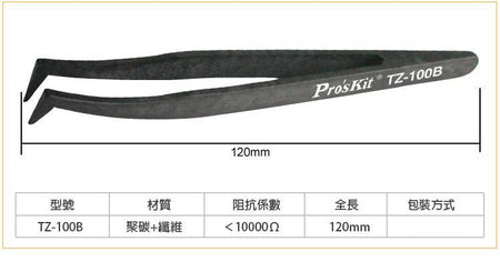 Penseta conductiv? TZ-100B (sfaturi fine curbate) este o penset? de 120 mm, care este fabricat? din materiale de înalt? calitate non-magnetice, rezistente la acizi ?i c?ldur?. Penseta este proiectat? cu dimensiuni minime ?i compacte, ceea ce îl face portabil ?i convenabil de utilizat. Este ideal pentru utilizarea în piese de precizie ?i asamblare.