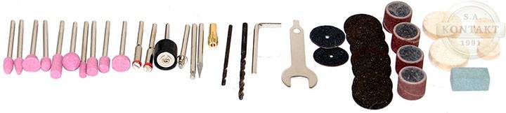 extensie flexibil? ax, adaptor racordare, accesorii ?lefuire, polizare ?i t?iere, clem? de ag??are, chei, geant? depozitare ?i transport.