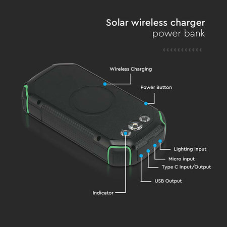 POWER BANK 30000mAh Wireless cu incarcare solara V-TAC SKU-7836