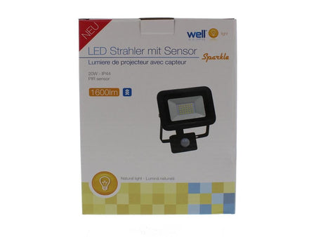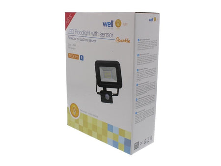 Proiector LED cu senzor 20W 1600lm IP44 4000K negru Well.