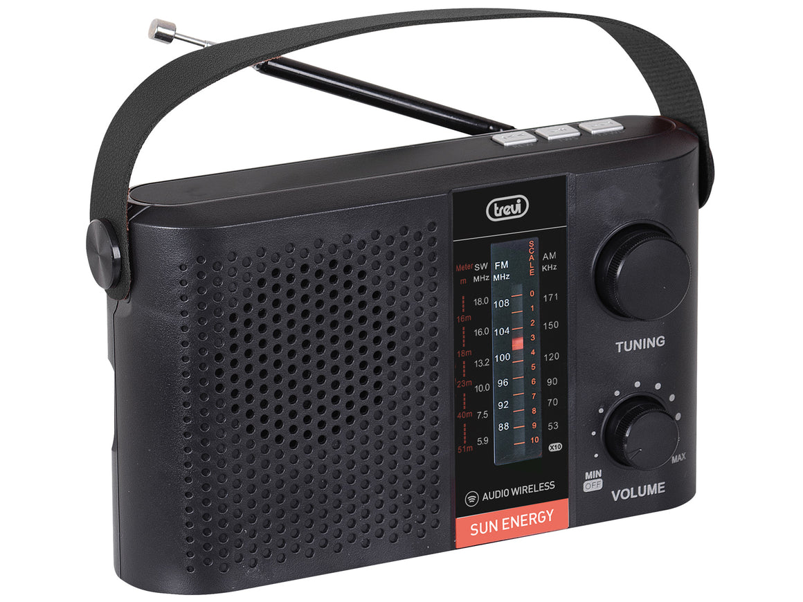 Radio portabil AM/FM/SW Bluetooth USB panou solar micro SD negru Trevi RA 7F25 BT.