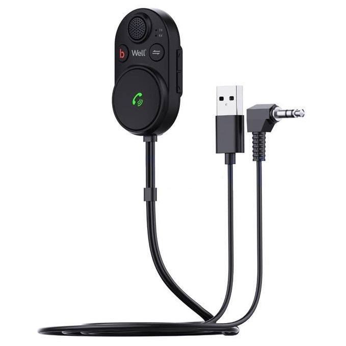 Receptor si Transmitator Bluetooth v5.3 carkit auto, alimentare prin USB, intrare/iesire prin Jack 3.5 mm, model Beat, marca Well.