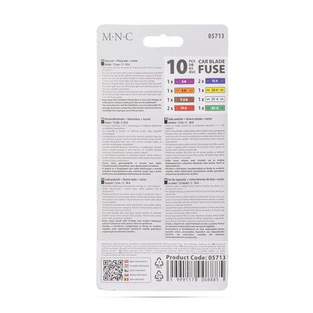 Set 10 sigurante auto 19x13mm 3 5 7.5 10 15 20 25 30A + creion de faza/tester 6-24V M`N`C 05713.