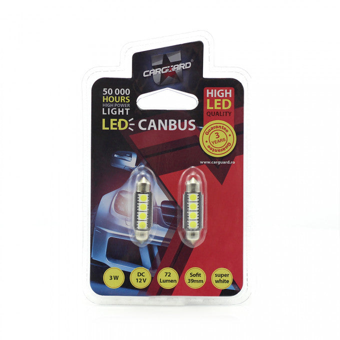 Set 2 becuri LED 12V 3W 72lm SOFIT 39mm CANBUS plafoniera CARGUARD