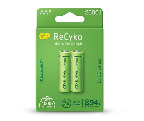 > 10% materiale reciclate (validat cu certificat de validare a revendicarilor de mediu (ECV)). Tip: Ni-Mh Tip: AA (R6) Standard: ReCkyo Tensiune de iesire: 1.2 V Amperaj: 2700 mAh Marca: GP