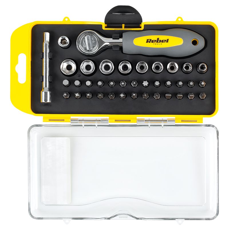 Set biti cu cheie clichet 38 piese REBEL RB-1104.
