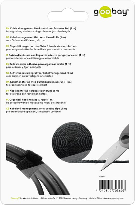 Set de gestionare a cablurilor cu rol? de fixare cu cârlig ?i bucl? (1 m)