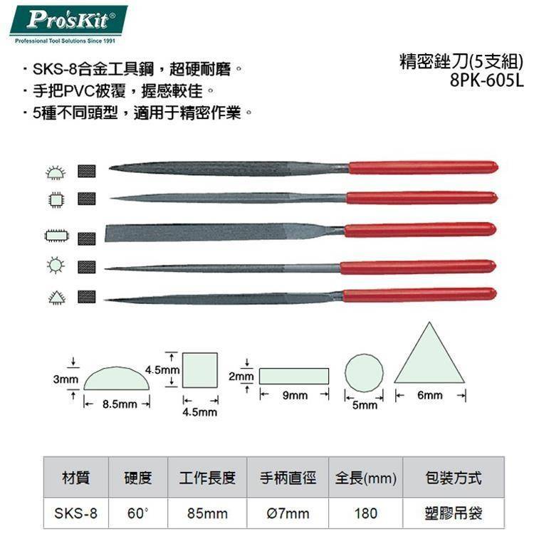 8PK-605L este un set de 5 pile confec?ionate cu mânere acoperite cu PVC.
