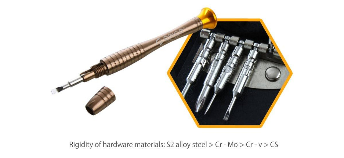 ORICO ST1 este echipat cu 24 de capete diferite care reprezinta diferite tipuri de surubelnite, ajutand la instalarea sau salvarea dispozitivelor digitale deteriorate.