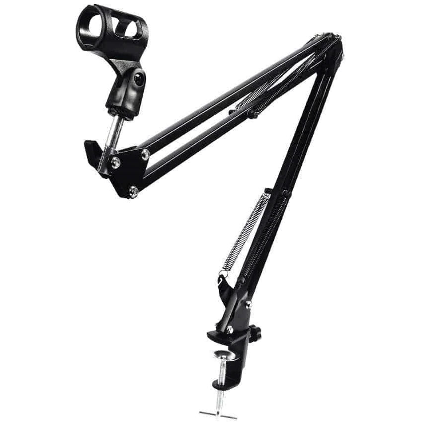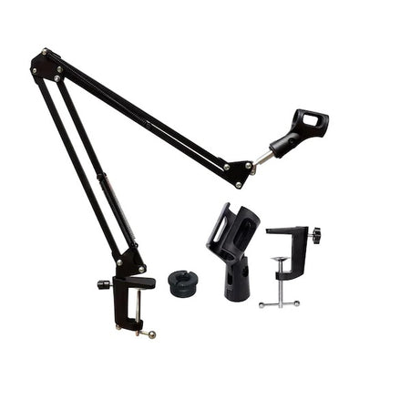 Stand pentru microfon montabil pe masa cu dublu brat.