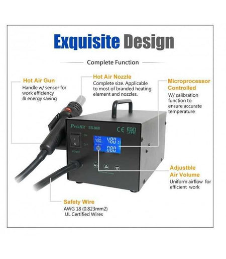 Statie de lipit cu aer cald si afisaj LCD ProsKit