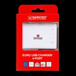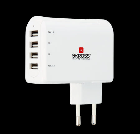 4 porturi USB pentru incarcare simultana puternica. max. 1A 1A 1A 1A max. 2.4A. Accesoriu: Incarcator Conector: USB A Tensiune intrare: 230 V AC Tensiune de iesire: 5 V USB Amperaj: 2.4 Ah Culoare: Alb Marca: Skross Garantie: 24 luni persoane fizice / 12 luni persoane juridice