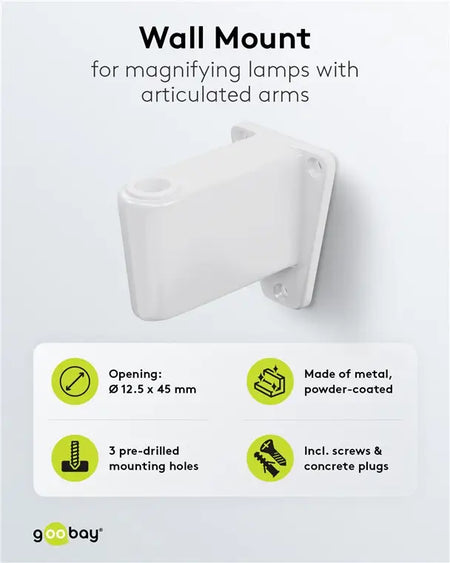 Suport de perete pentru lampa cu lupa pentru cod 60360 /60361 /60362 /60364 alb Goobay 55771
