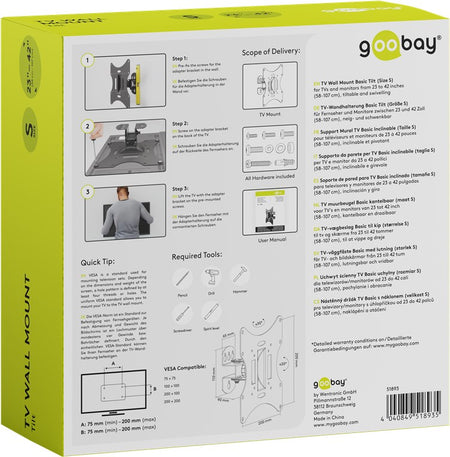 51893 Flat Panel Wall Hanger Aparat Goobay TV EasyFlex M,