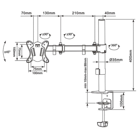 Suport monitor 13-27inch VESA 75x75 100x100 UCH0211 Cabletech