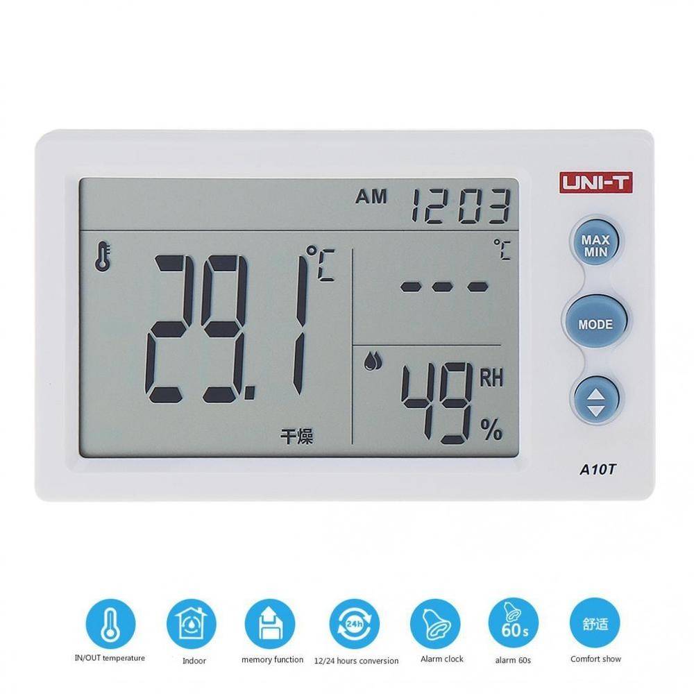 A10T m?soar? temperatura ?i umiditatea în timp real ?i afi?eaz? citirile pe un ecran mare.