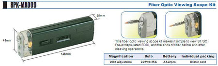 Acest set de dimensiuni vizuale cu fibra optica faciliteaza vizualizarea FDDI pre-incapsulata ST / SC si capetele fibrei inainte si dupa operatiile de scindare