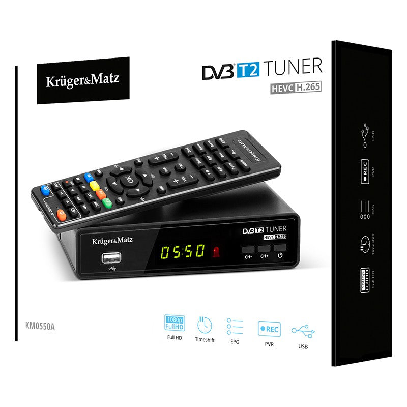 Tuner DVB-T2 DVB-T H.265 HEVC redare media si PVR inregistrare prin port USB 2.0 Kruger&Matz KM0550A